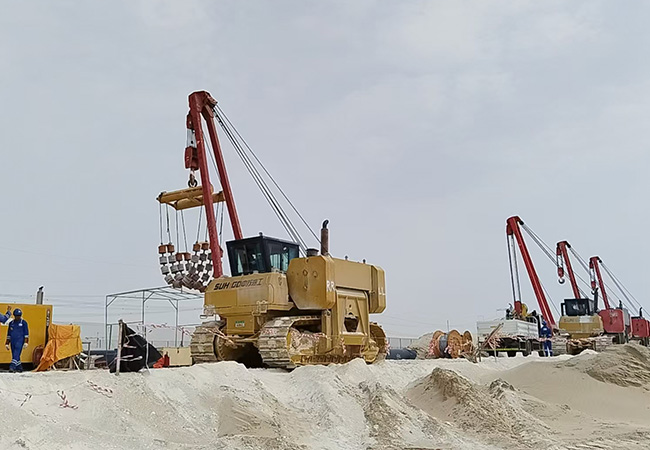 阿聯酋地區氣候炎熱,夏季氣溫常高達50攝氏度以上,加之沙塵環境復雜,對工程設備的性能提出了高要求。中蘇海工履帶吊管機以其強大的動力系統、高效的散熱設計以及堅固的結構,完美適應了這些挑戰,確保了施工的高效性和連續性。設備在高溫環境下運行穩定,操作靈活,極大地提升了施工效率,贏得了現場施工人員的一致好評。